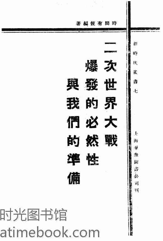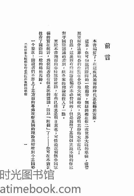 | 网盘路径:/时光图书馆珍藏系列/书籍文件/老图书/《二次世界大战爆发的必然性与我们的准备》电子版合集.db | ||