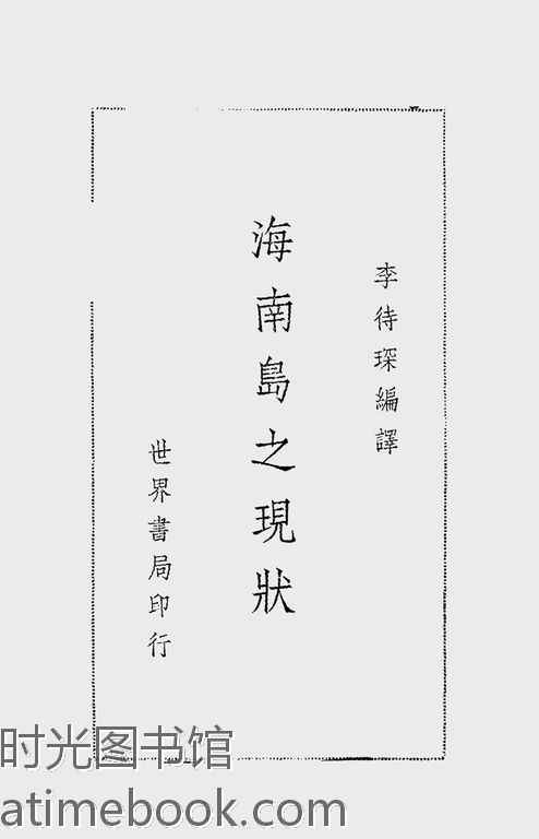 网盘路径:/时光图书馆珍藏系列/书籍文件/老图书/《海南岛之现状》电子版合集.db