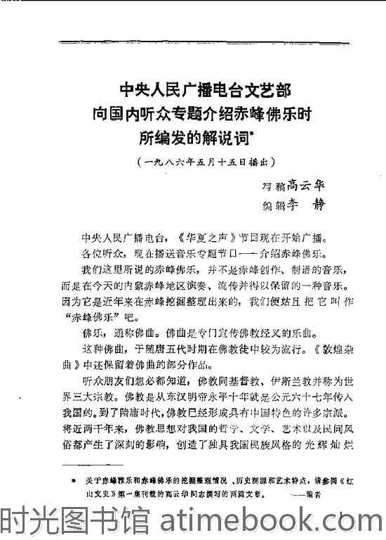 2-*人民广播电台文艺部向国内听众专题介绍《赤峰佛乐》时所编发的解说词_写稿高云华_编辑李静