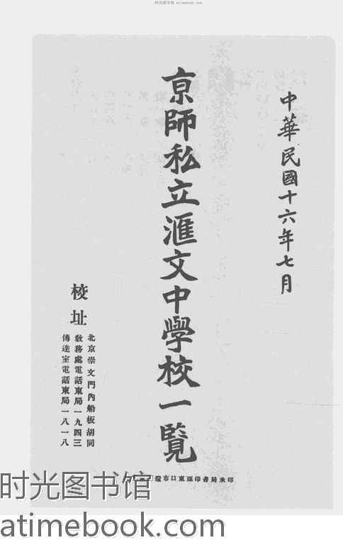 | 网盘路径:/时光图书馆珍藏系列/书籍文件/老图书/《京师私立汇文中学校一览》电子版合集.db | ||