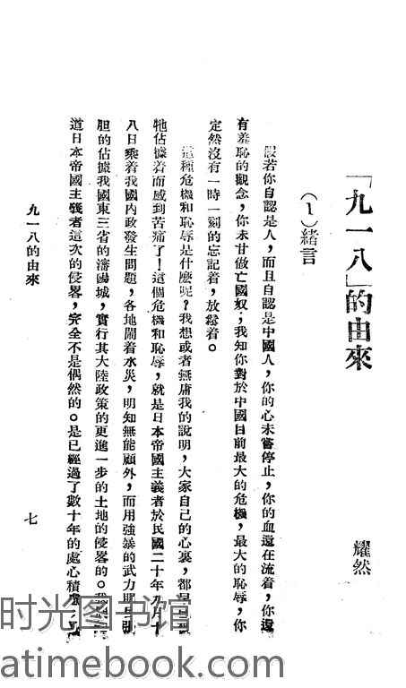 | 网盘路径:/时光图书馆珍藏系列/书籍文件/老图书/《九一八纪念册》电子版合集.db | ||