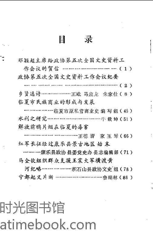 | 网盘路径:/时光图书馆珍藏系列/书籍文件/老图书/《临夏文史资料选辑_第3辑》电子版合集.db | ||