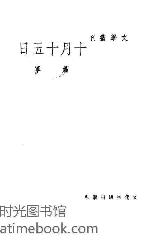 | 网盘路径:/时光图书馆珍藏系列/书籍文件/老图书/《十月十五日》电子版合集.db | ||