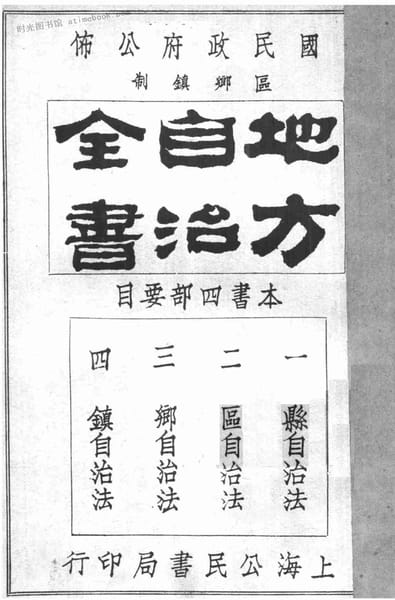 | 网盘路径:/时光图书馆珍藏系列/书籍文件/老图书/《地方自治全书》电子版合集.db | ||