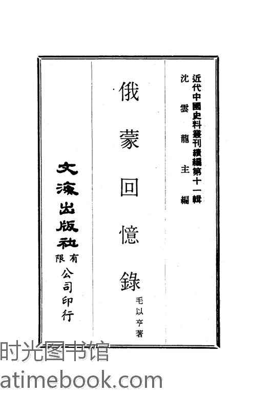 | 网盘路径:/时光图书馆珍藏系列/书籍文件/老图书/《俄蒙回忆录》电子版合集.db | ||