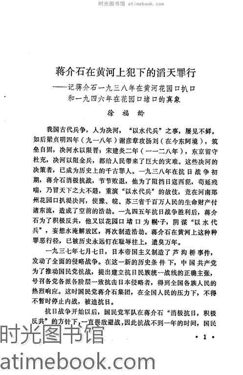 2-蒋介石在黄河上犯下的滔天罪行——记蒋介石一九三八年在黄河花园口扒口和一九四六年在花园口堵口的真象_徐福龄