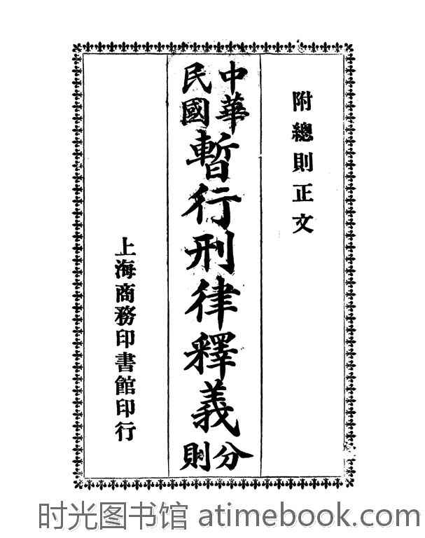 网盘路径:/时光图书馆珍藏系列/书籍文件/老图书/《中华民国暂行刑律释义分则》电子版合集.db