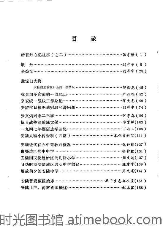 | 网盘路径:/时光图书馆珍藏系列/书籍文件/老图书/《安陆文史资料_第2辑》电子版合集.db | ||
