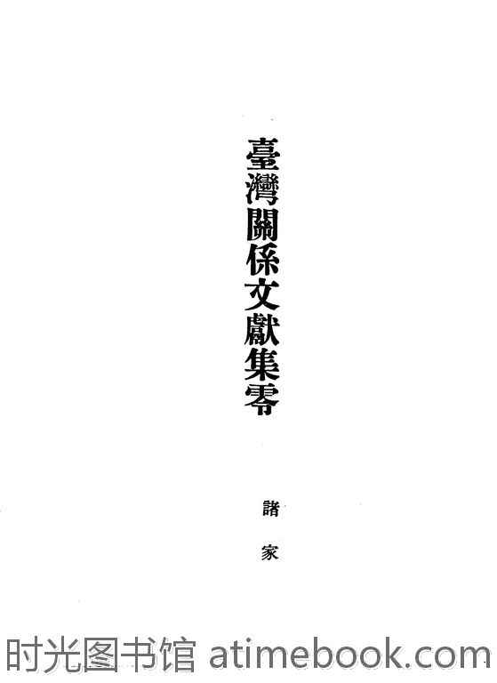 | 网盘路径:/时光图书馆珍藏系列/书籍文件/老图书/《台湾关系文献集零》电子版合集.db | ||