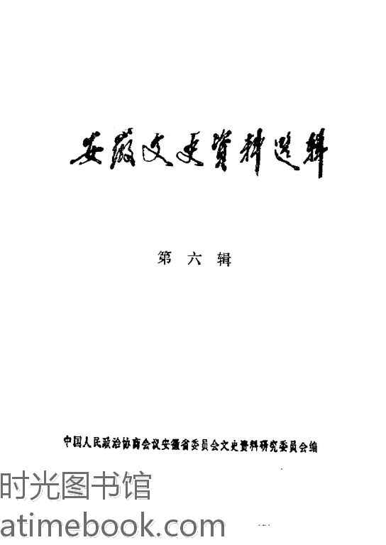 | 网盘路径:/时光图书馆珍藏系列/书籍文件/老图书/《安徽文史资料选辑_第6辑》电子版合集.db | ||