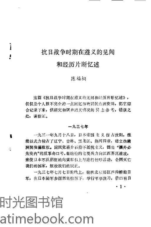| 网盘路径:/时光图书馆珍藏系列/书籍文件/老图书/《遵义文史资料_第7辑_关于抗日战争时期的遵义上_纪念抗日战争和世界反法西斯战争胜利40周年》电子版合集.db | ||