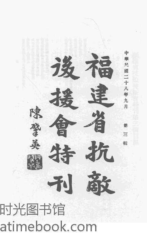 | 网盘路径:/时光图书馆珍藏系列/书籍文件/老图书/《福建省抗敌后援会特刊_第3辑》电子版合集.db | ||