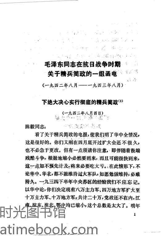 2-毛泽东同志在抗日战争时期关于精兵简政的一组函电(一九四二年八月-一九四三年八月)