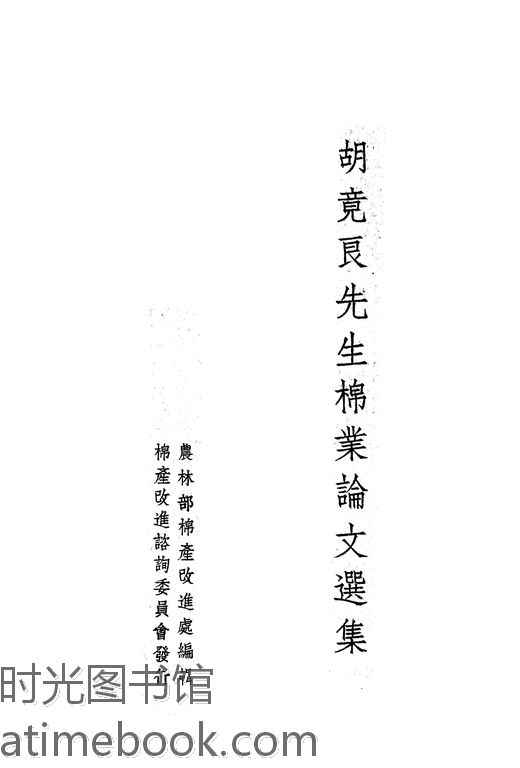 | 网盘路径:/时光图书馆珍藏系列/书籍文件/老图书/《胡竟良先生棉业论文选集》电子版合集.db | ||