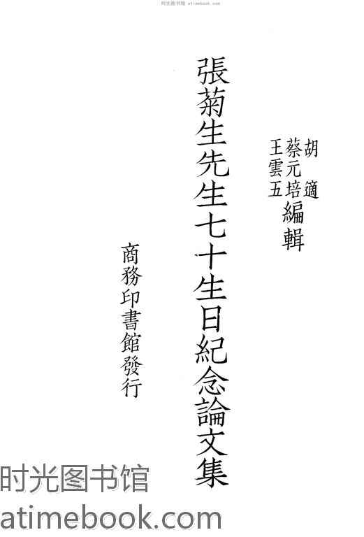 | 网盘路径:/时光图书馆珍藏系列/书籍文件/老图书/《张菊生先生七十生日论文集》电子版合集.db | ||