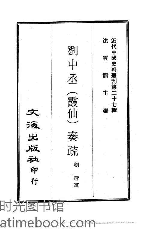 | 网盘路径:/时光图书馆珍藏系列/书籍文件/老图书/《刘中丞(霞仙)奏疏》电子版合集.db | ||