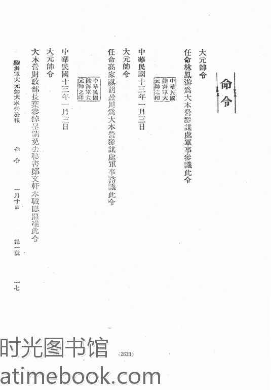 | 网盘路径:/时光图书馆珍藏系列/书籍文件/老图书/《陆海军大元帅大本营公报(民国十三年)》电子版合集.db | ||