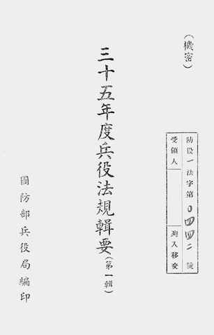 | 网盘路径:/时光图书馆珍藏系列/书籍文件/老图书/《三十五年度兵役法规辑要_第1辑》电子版合集.db | ||