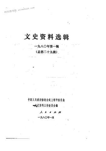 | 网盘路径:/时光图书馆珍藏系列/书籍文件/老图书/《上海文史资料选辑_1980年第1辑_总第29辑》电子版合集.db | ||