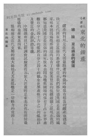 | 网盘路径:/时光图书馆珍藏系列/书籍文件/老图书/《东北的矿产》电子版合集.db | ||