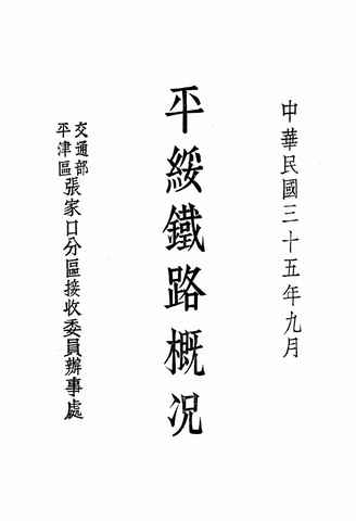 | 网盘路径:/时光图书馆珍藏系列/书籍文件/老图书/《中华民国三十五年九月_平绥铁路概况》电子版合集.db | ||