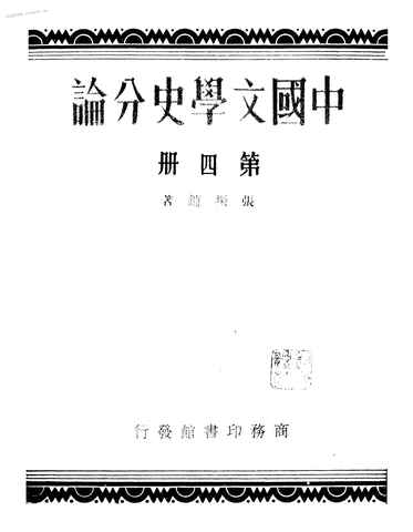 | 网盘路径:/时光图书馆珍藏系列/书籍文件/老图书/《中国文学史分论_第4册》电子版合集.db | ||