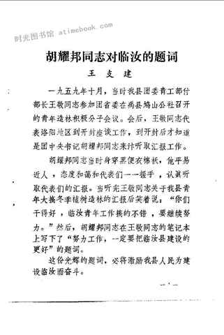 2-一、胡*同志对临汝的题词王支建