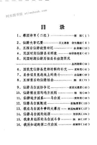| 网盘路径:/时光图书馆珍藏系列/书籍文件/老图书/《仙游文史资料_第3辑》电子版合集.db | ||