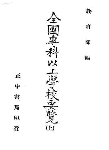 | 网盘路径:/时光图书馆珍藏系列/书籍文件/老图书/《全国专科以上学校要览(上)》电子版合集.db | ||