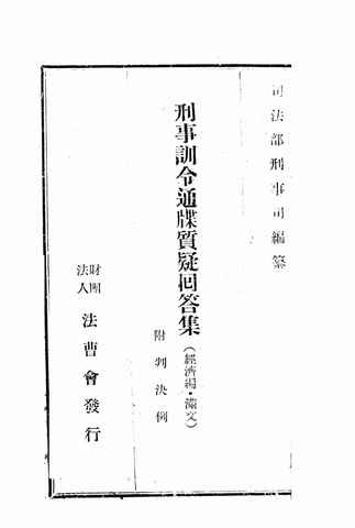 | 网盘路径:/时光图书馆珍藏系列/书籍文件/老图书/《刑事训令通牒质疑答集》电子版合集.db | ||