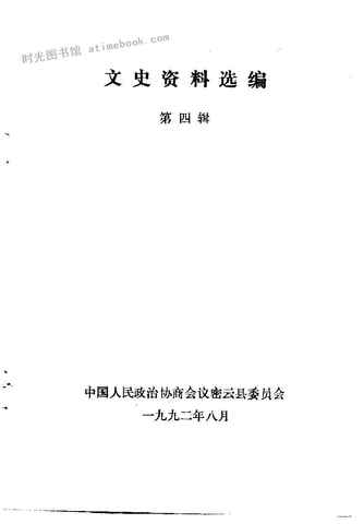 | 网盘路径:/时光图书馆珍藏系列/书籍文件/老图书/《北京密云文史资料选编_第4辑》电子版合集.db | ||