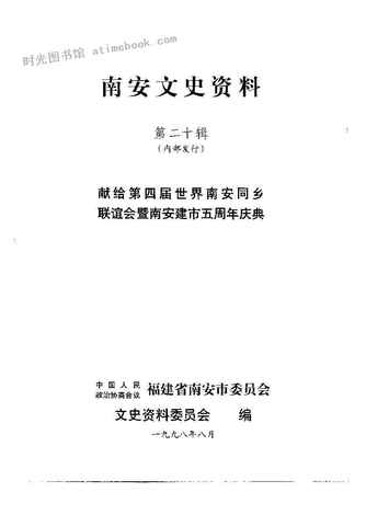 | 网盘路径:/时光图书馆珍藏系列/书籍文件/老图书/《南安文史资料_第20辑》电子版合集.db | ||