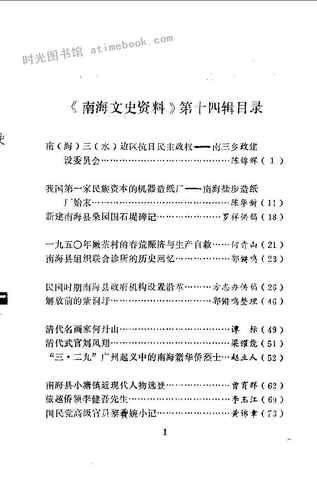 | 网盘路径:/时光图书馆珍藏系列/书籍文件/老图书/《南海文史资料_第14辑》电子版合集.db | ||