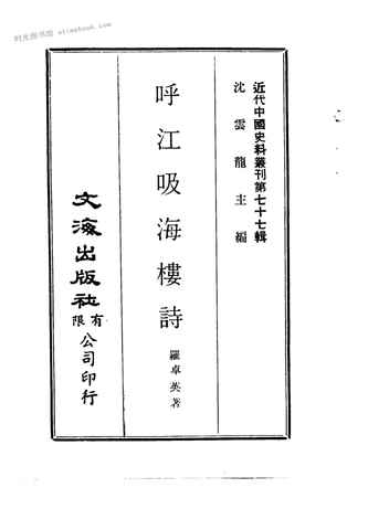 | 网盘路径:/时光图书馆珍藏系列/书籍文件/老图书/《呼江吸海楼诗》电子版合集.db | ||
