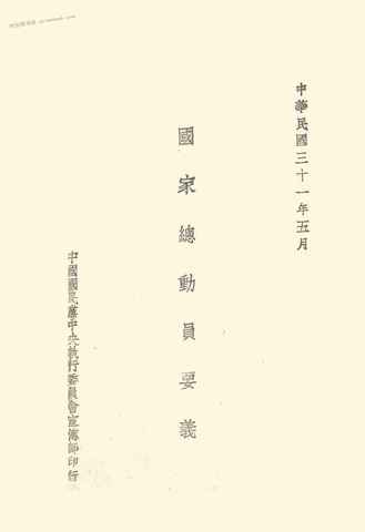| 网盘路径:/时光图书馆珍藏系列/书籍文件/老图书/《国家总动员要义》电子版合集.db | ||