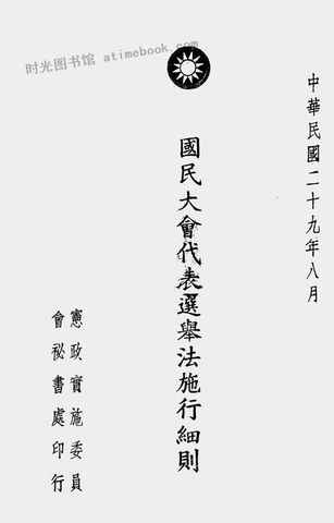 | 网盘路径:/时光图书馆珍藏系列/书籍文件/老图书/《国民大会代表选举法施行细则》电子版合集.db | ||