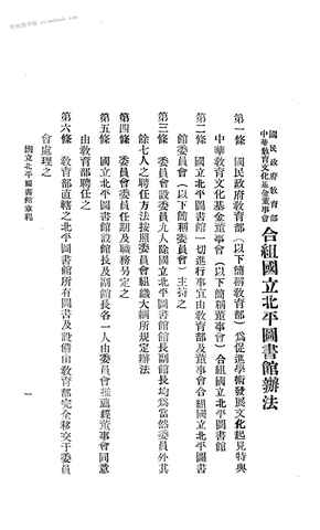2-(一)国民*教育部中华教育文化基金董事会合组国立北平图书馆办法