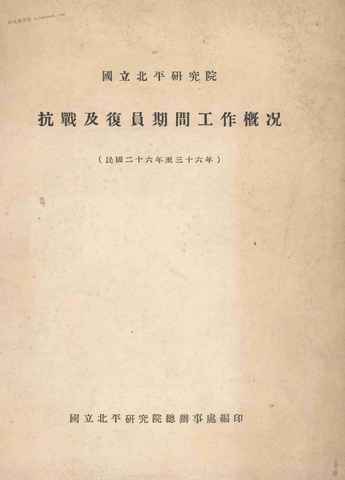 | 网盘路径:/时光图书馆珍藏系列/书籍文件/老图书/《国立北平研究院抗战及复员期间工作概况_(民国二十六年至三十六年)》电子版合集.db | ||