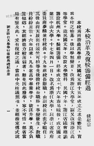 文件下载 | 名称:《国立浙江大学举行复校典礼纪念册》电子版合集 | |