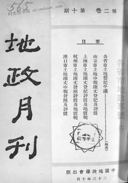 | 网盘路径:/时光图书馆珍藏系列/书籍文件/老图书/《地政月刊》电子版合集.db | ||
