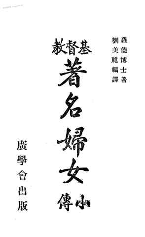 | 网盘路径:/时光图书馆珍藏系列/书籍文件/老图书/《基督教著名妇女小传》电子版合集.db | ||