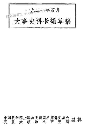| 网盘路径:/时光图书馆珍藏系列/书籍文件/老图书/《大事史料长编草稿(一九二一年四月)》电子版合集.db | ||