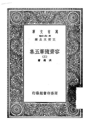 | 网盘路径:/时光图书馆珍藏系列/书籍文件/老图书/《容斋随笔五集(三)》电子版合集.db | ||