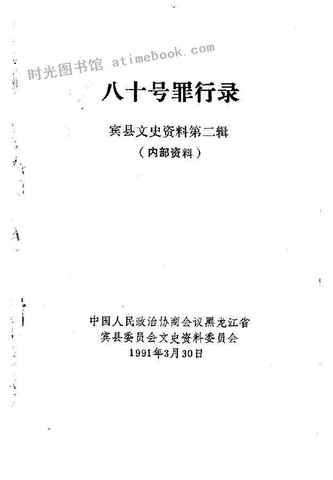 网盘路径:/时光图书馆珍藏系列/书籍文件/老图书/《宾县文史资料_第2辑_八十号罪行录》电子版合集.db