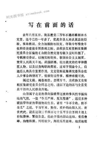 | 网盘路径:/时光图书馆珍藏系列/书籍文件/老图书/《山阳县文史资料_第4辑_自然灾害专辑》电子版合集.db | ||