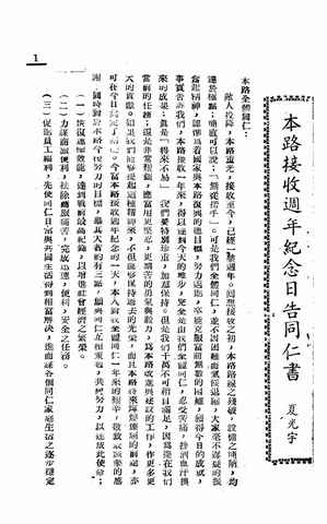 3-本路接收周年纪念日告同仁书