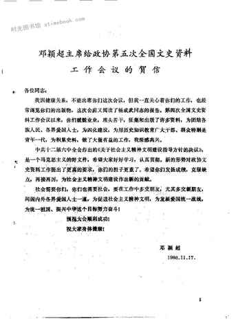 2-邓颖超主席在给*第五次全国文史资料工作会议的贺信