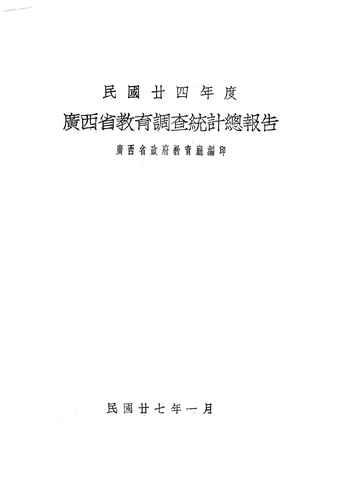 | 网盘路径:/时光图书馆珍藏系列/书籍文件/老图书/《广西省教育调查统计总报告》电子版合集.db | ||
