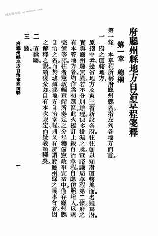 | 网盘路径:/时光图书馆珍藏系列/书籍文件/老图书/《府厅州县地方自治章程笺释》电子版合集.db | ||