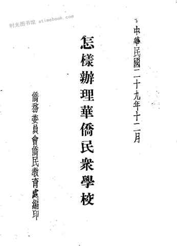 | 网盘路径:/时光图书馆珍藏系列/书籍文件/老图书/《怎样办理华侨民众学校》电子版合集.db | ||